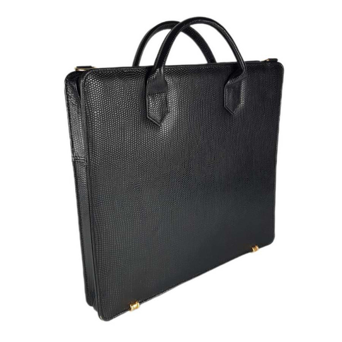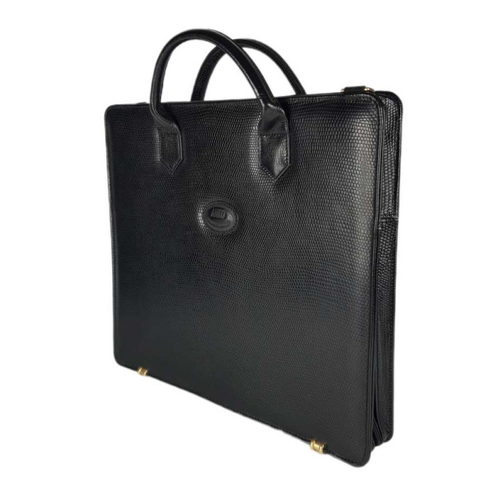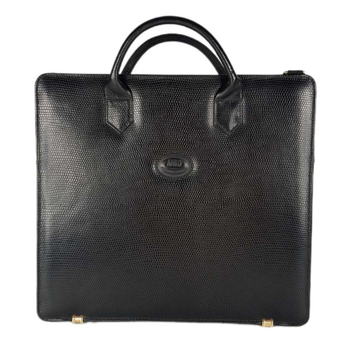 Папка с ручками для документов, натуральная кожа.цвет черный, тиснение рептилия