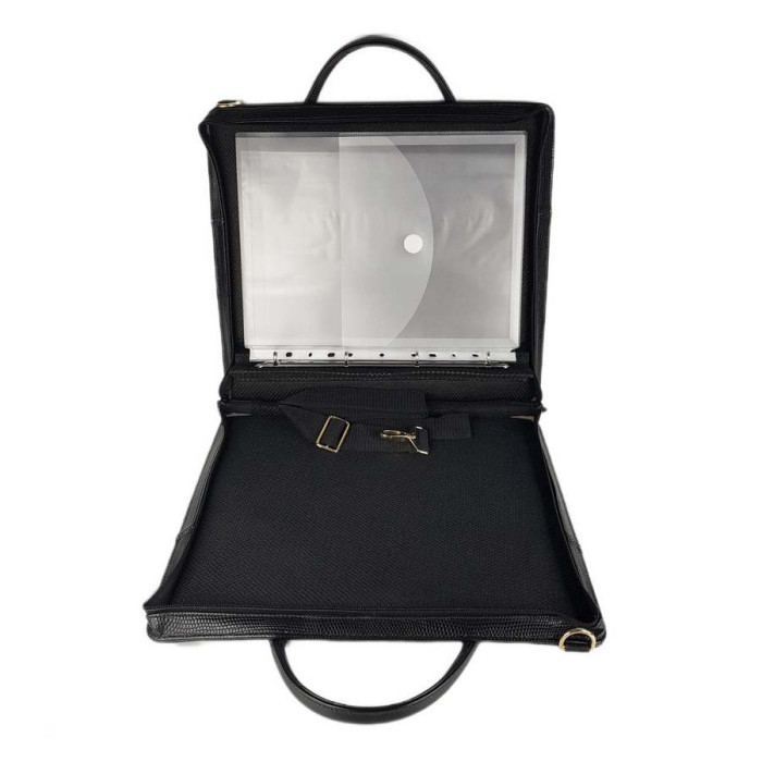 Папка для документов из натуральной кожи – это статусная вещь для делового человека! Внутри имеет кольца для файлов и др., есть крепление для планшета или небольшого ноутбука. Есть также петли для ручек и карман для визиток. В комплект прилагается текстильный регулируемый плечевой ремень