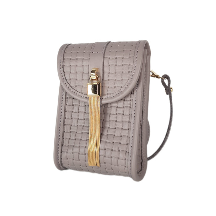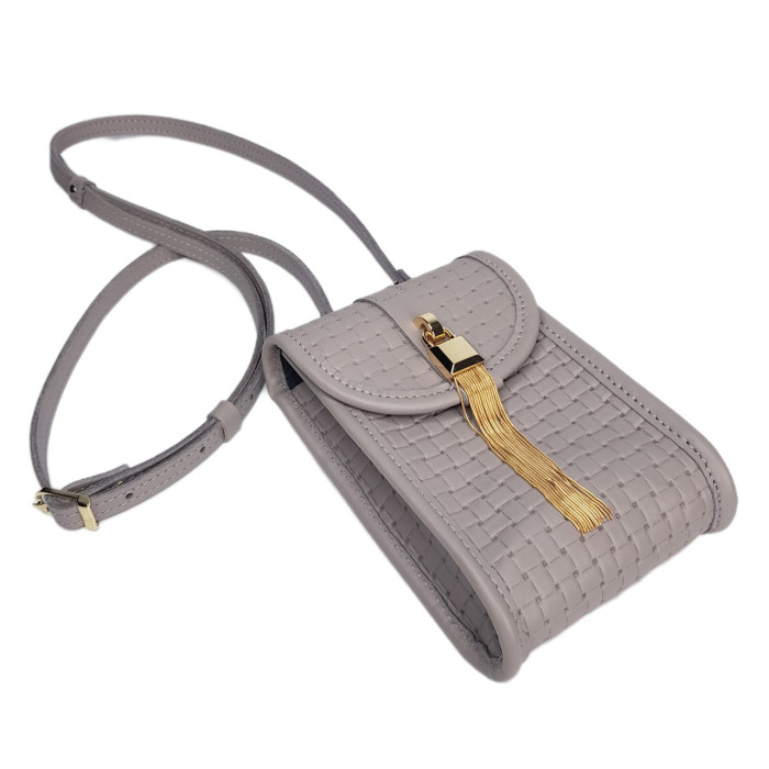 Сумка женская "Лайк" натуральная кожа, бежевая (латте) тиснение венето,с цепочкой