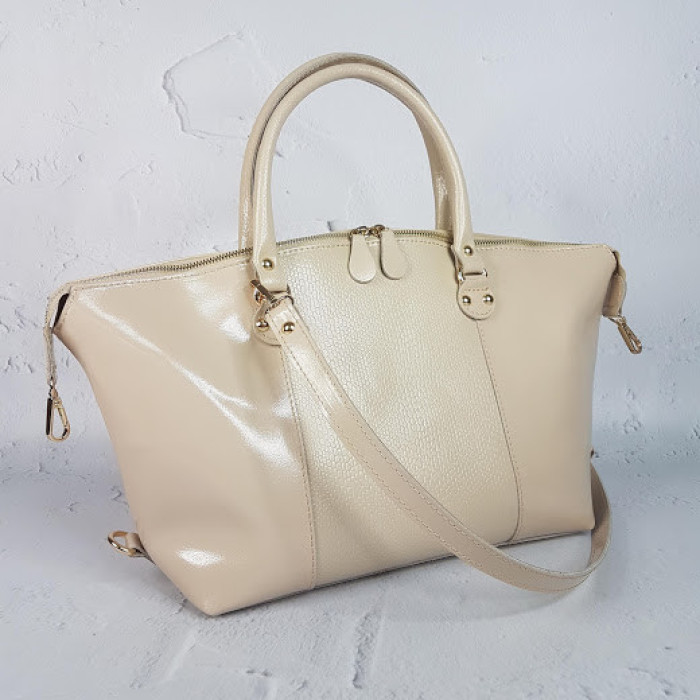 Очень вместительная сумка-трансформер "ВЕРОНА". За счет боковых карабинов, трансформируется в другую модель сумки.(см.фото). Сумка на подкладке, внутри имеется вместительный карман на молнии и открытый глубокий карман. Есть две короткие ручки для ношения в руке и один плечевой ремень, который крепится с помощью карабинов.