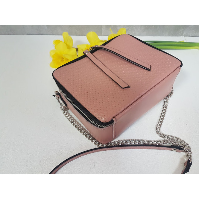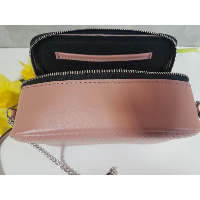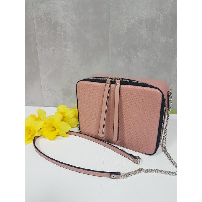 Очень оригинальная сумочка из натуральной кожи "КВАДРО".Она отлично держит форму и поместит в себя все необходимое,что надо взять с собой! Особенность этой модели в контрастной черной молнии, но, если Вы хотите, мы можем сделать ее под цвет сумки. Внутри на подкладке. Имеет небольшой внутренний кармашек. Ремешок это плотная серебряная цепь с плечевой вставкой из кожи.