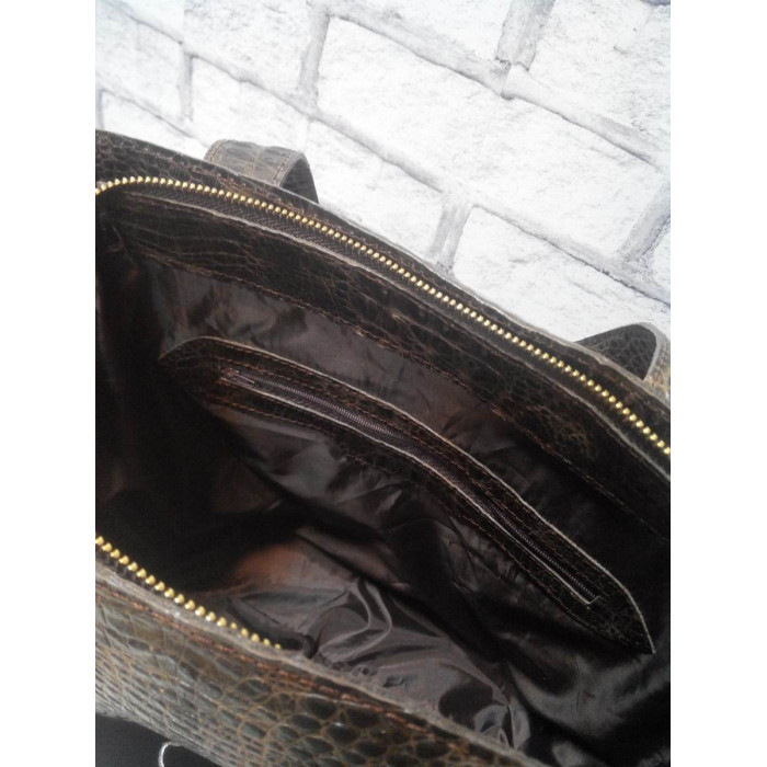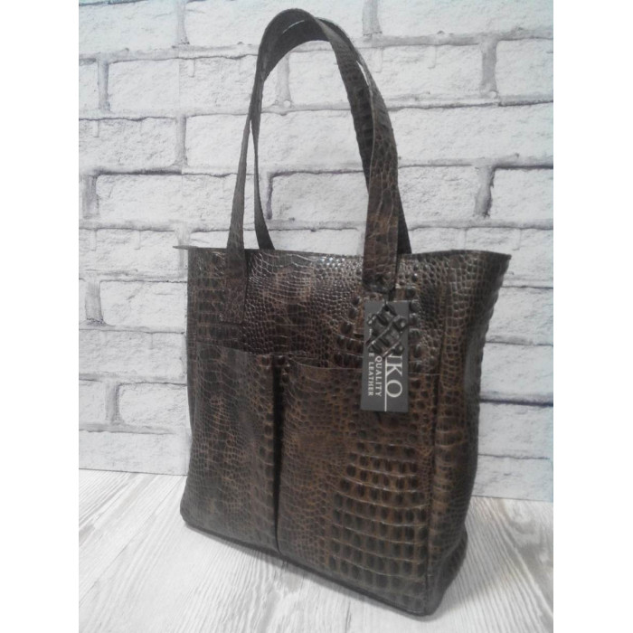 Ее можно носить как в руке ,так и через плече.Изготовлена из дорогой высококачественной кожи с тиснением крокодила.На подкладке. Внутри имеются два открытых кармашка (по надобности можем сделать дополнительный карман на молнии). Ручки сумки можем удлинить/укоротить по Вашему желанию.