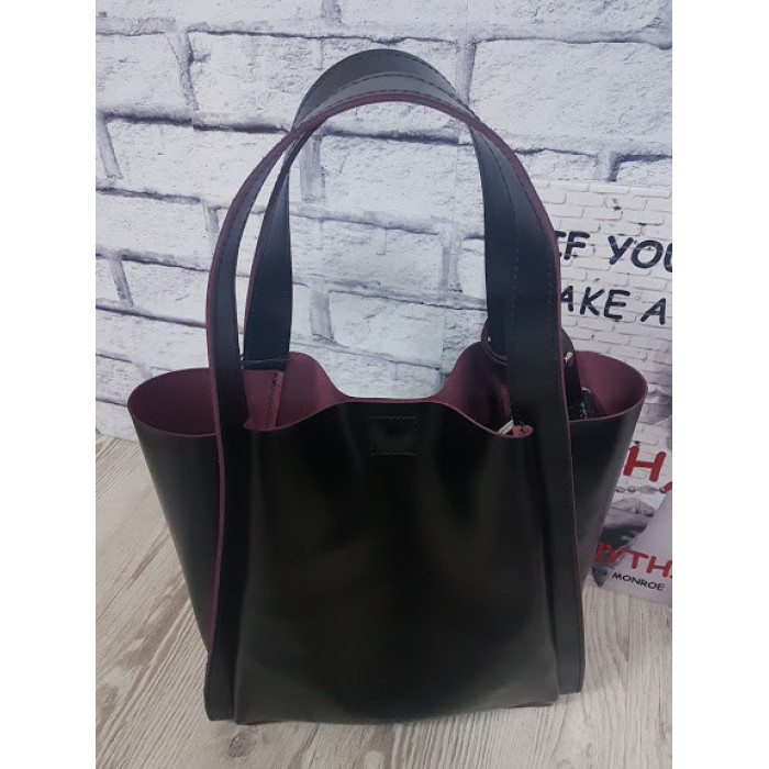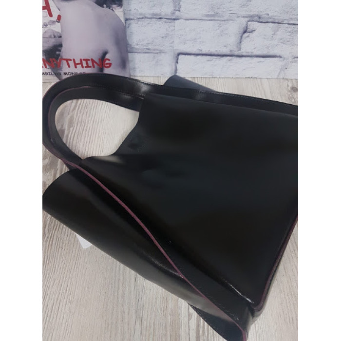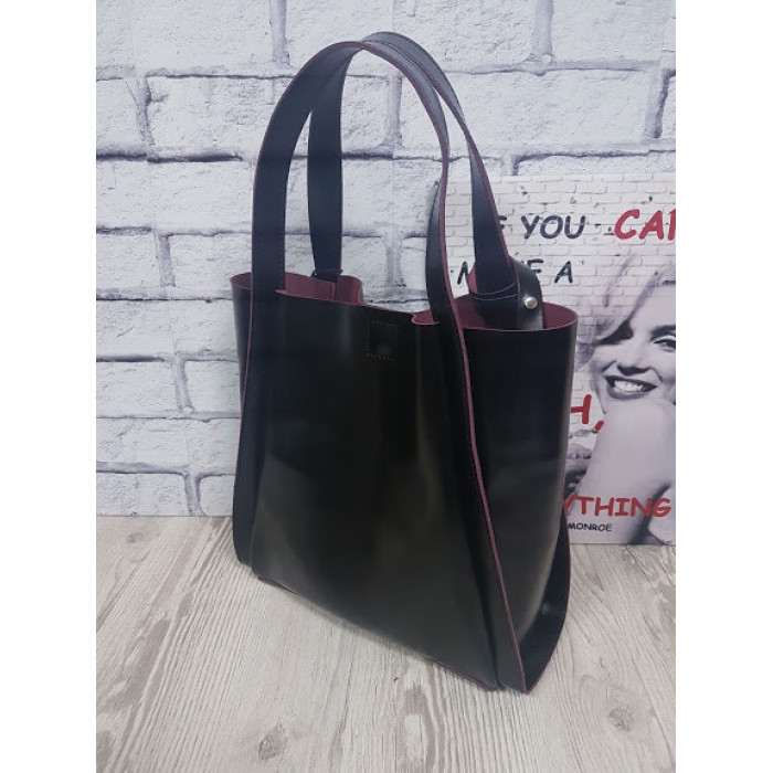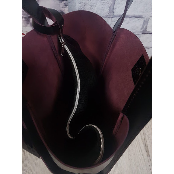 Вместительная сумка из натуральной кожи, внутри специальное отделение - футляр, которое крепится к ручке сумки с помощью кожаного ремешка. Возможно изготовить сумку на молнии и на подкладке. Ручки сумки можем удлинить по Вашему желанию. Застегивается на скрытый магнит.