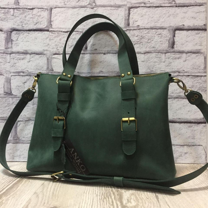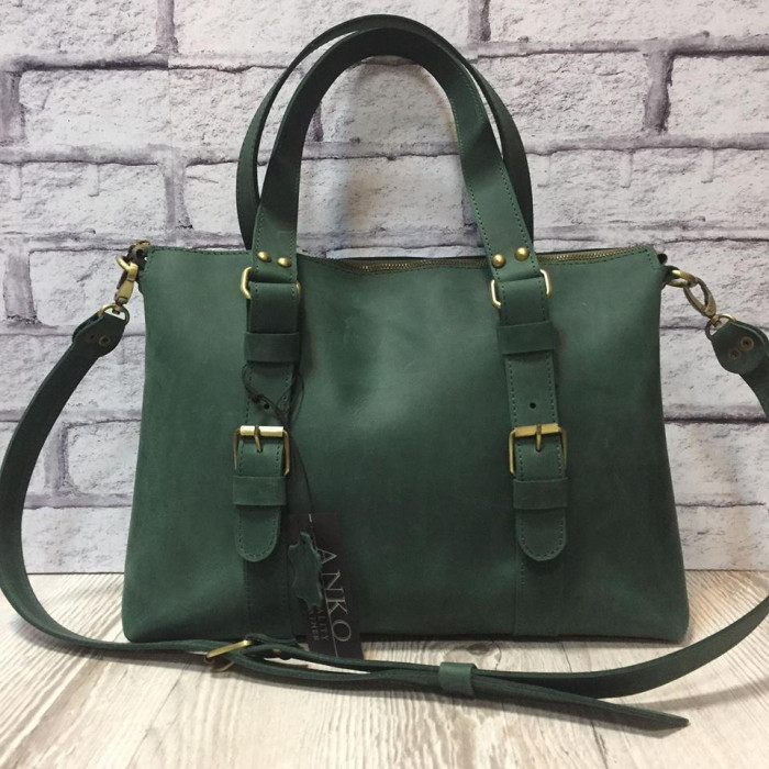 Сумка "Монако" натуральная кожа, зеленая Crazy Horse