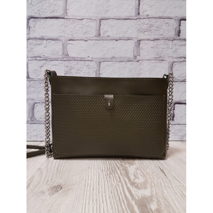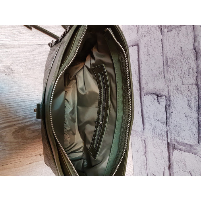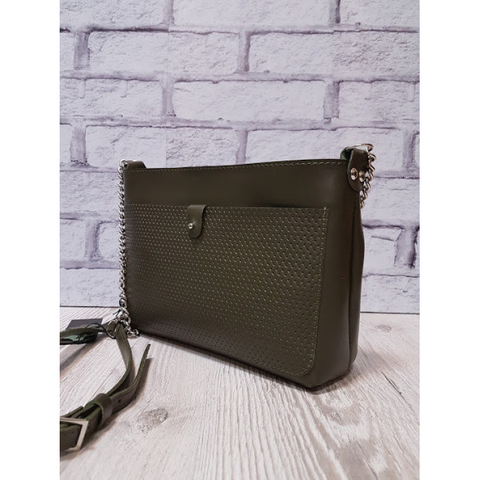 Сумка женская "Деми" натуральная кожа,хаки с плетенкой