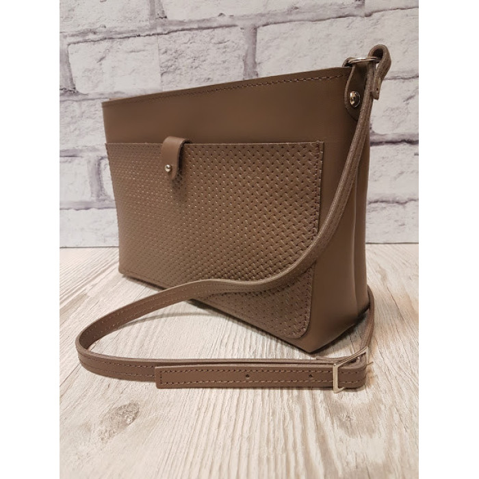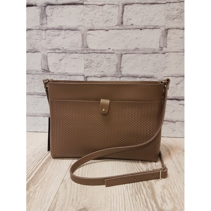 Сумка женская "Деми" натуральная кожа,капучино с плетенкой