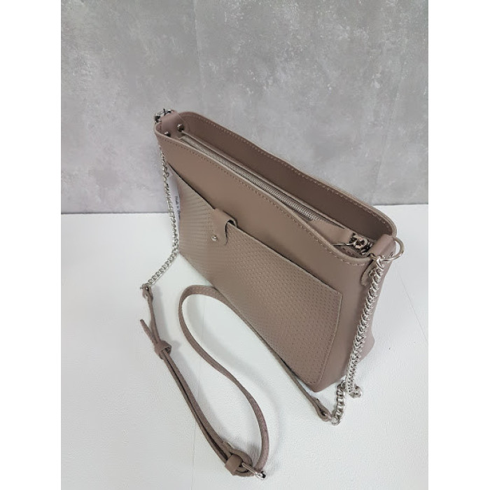 Без сумочки кросс-боди невозможно! Этот аксессуар должен быть в гардеробе каждой модницы.Сумка "Деми" выполнена из натуральной кожи, очень удобная и компактная. Внутри на подкладке , имеется внутренний карман на молнии. Плечевой ремень двойной,регулируется. В качестве декора,в плечевом ремне,сделаны оригинальные вставки из цепочки.