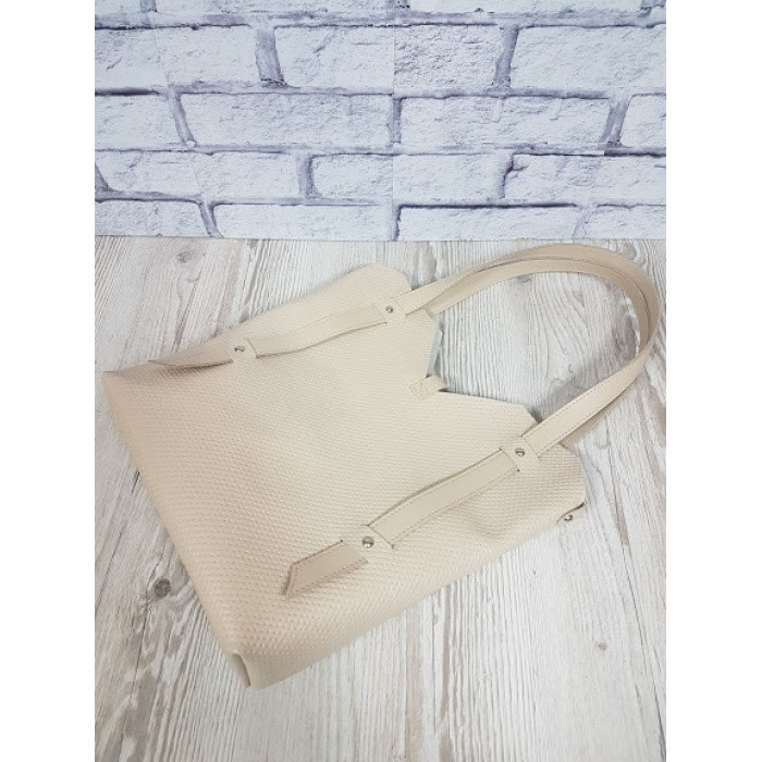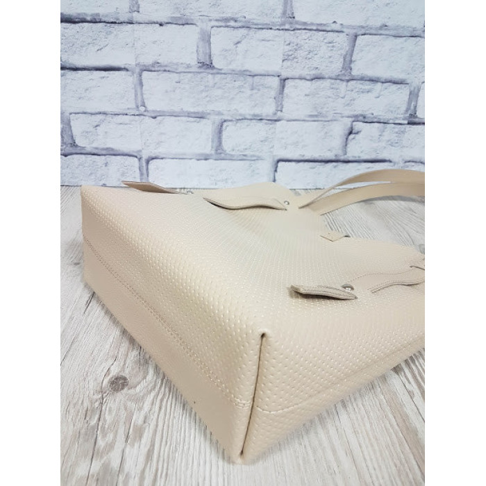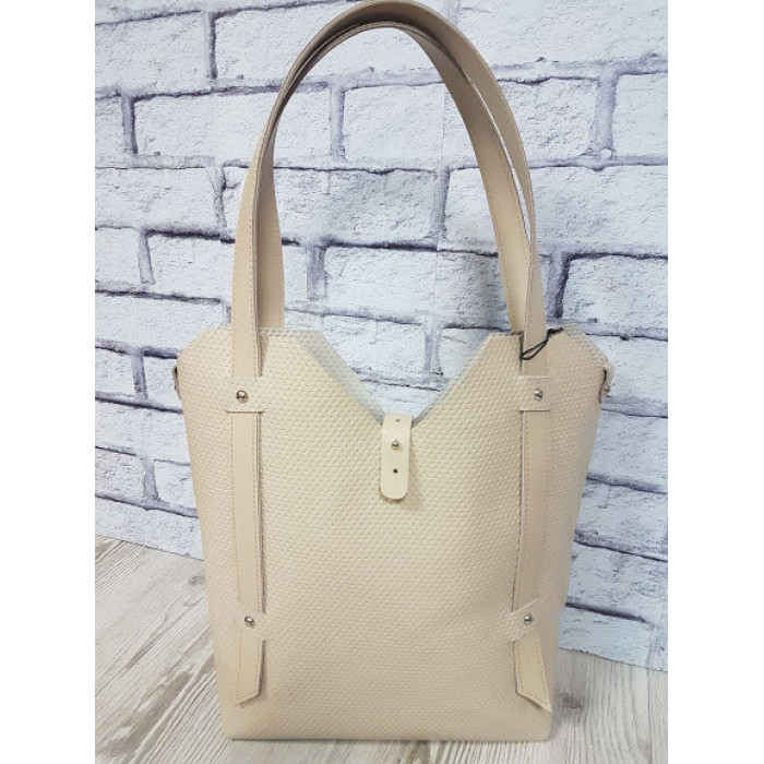 Вместительная сумка из натуральной кожи, внутри специальное отделение - футляр, которое крепится с помощью кожаного ремешка, отделение-футляр на кнопке. Высота ручек 25см.