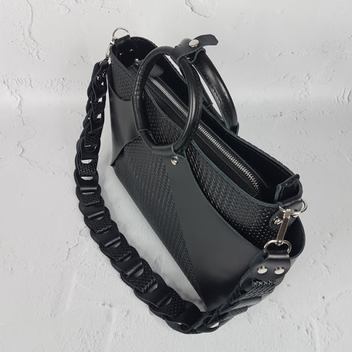 Невероятно оригинальная женская сумка "РОНДА"! Сумка закрывается на молнию. Внутри имеется карман на молнии и открытый карман. Плечевой ремень на карабинах.
