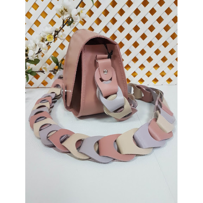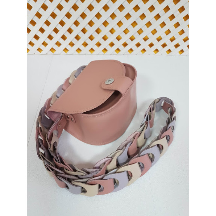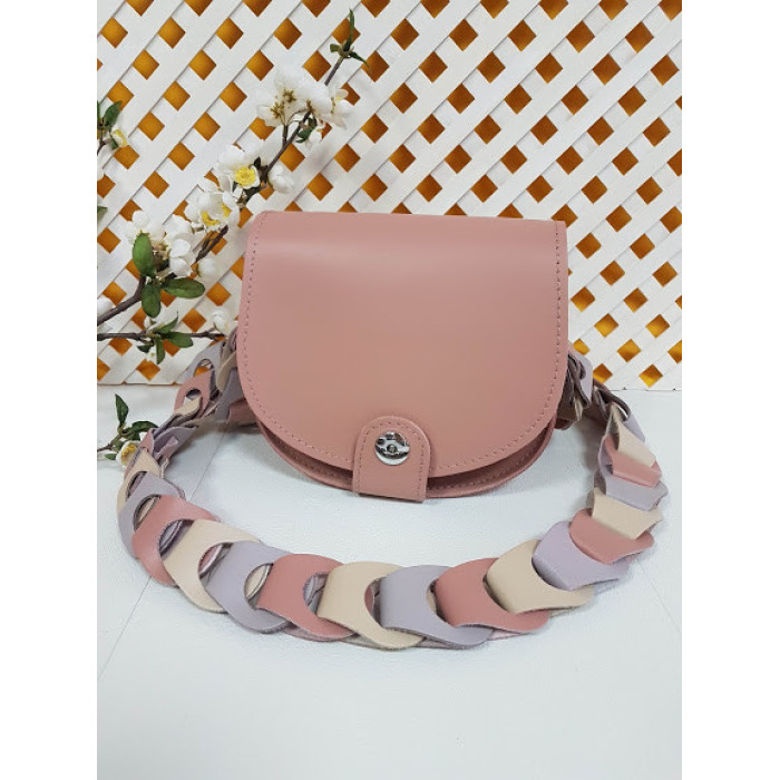 Сумка женская "Кенди" ремень-плетение натуральная кожа, розовая матовая