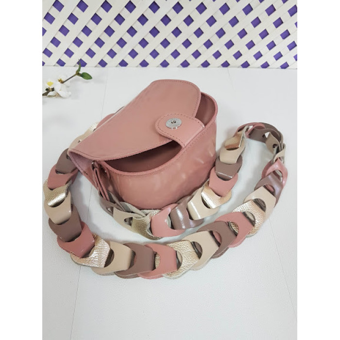 Маленькая стильная сумочка никогда не будет лишней! Сумка без подкладки,закрывается на замок-магнит. Плечевой ремень изготовлен из очень оригинального плетения.