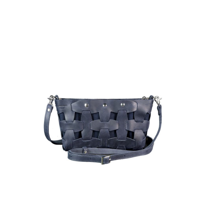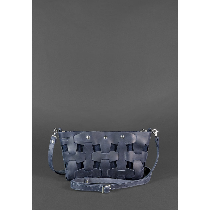 Сумка Пазл S гармонично сочетает темно-синий трикотаж с натуральной кожей Crazy Horse в черном цвете..