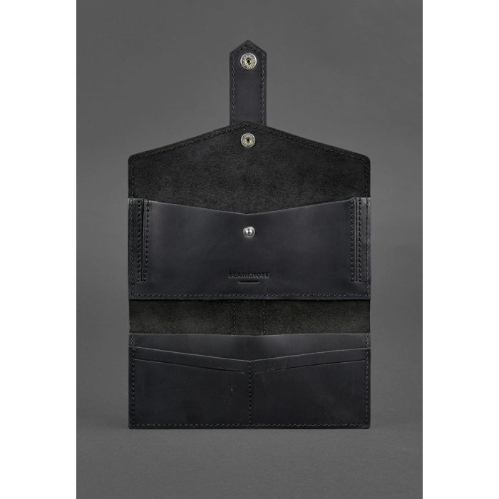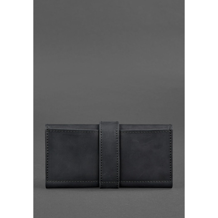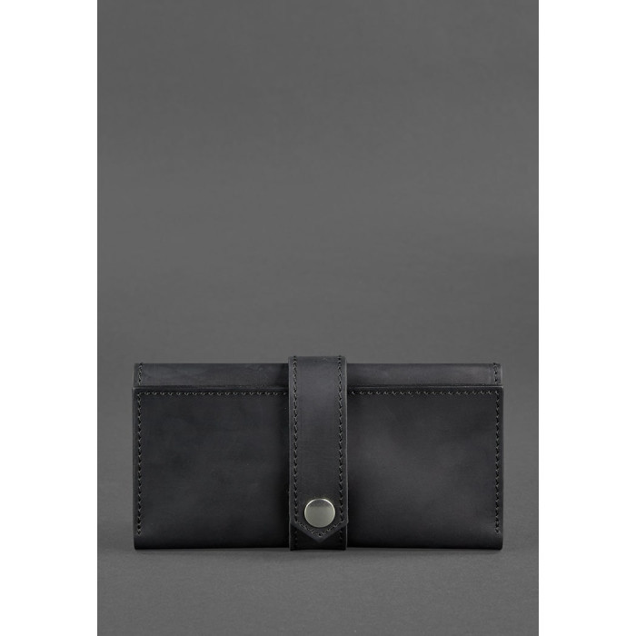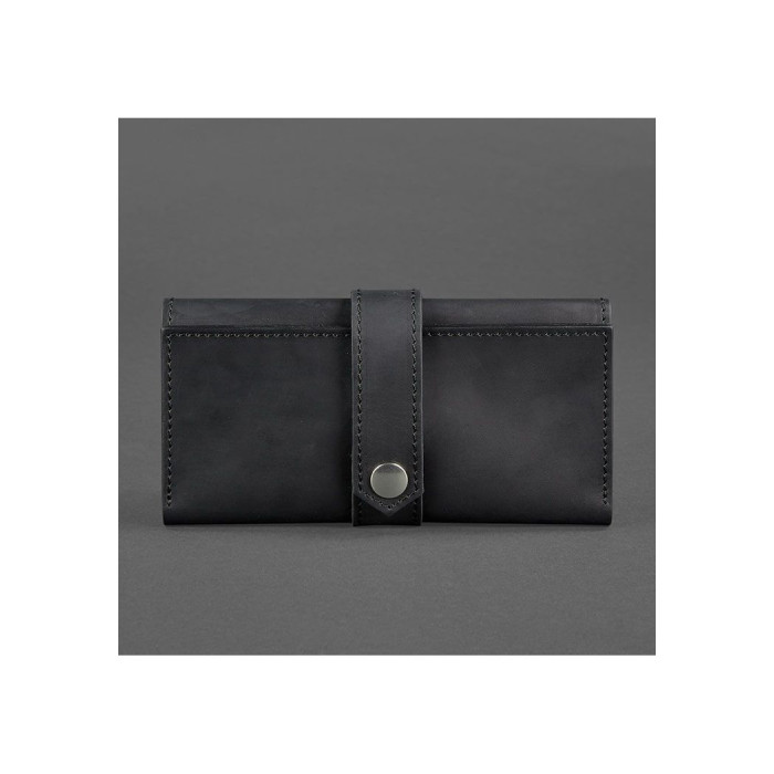Стильное портмоне в черном цвете, которое можно использовать в качестве клатча. Изготовлено из натуральной кожи Crazy Horse. Она имеет очень приятную матовую поверхность и умент красиво стариться: со временем изделие приобретает очень винтажный вид.