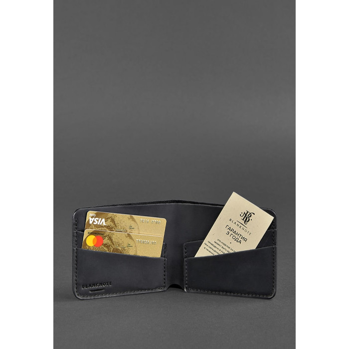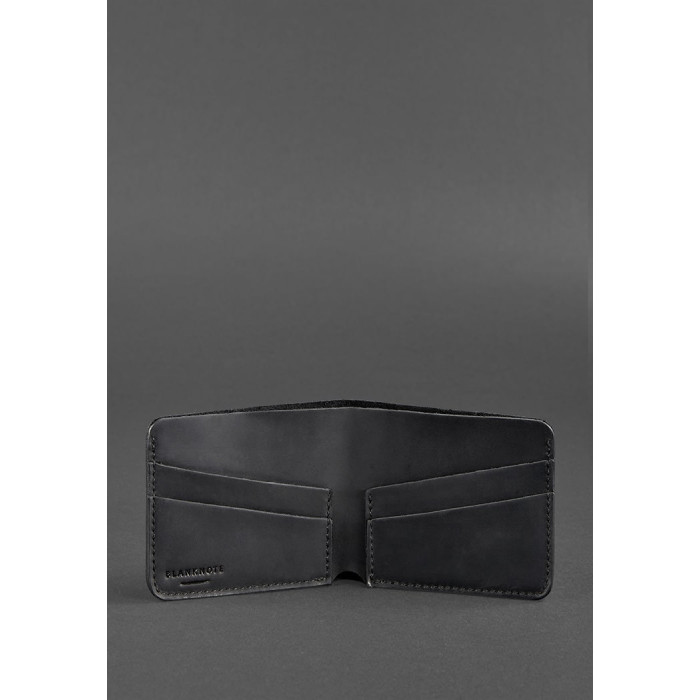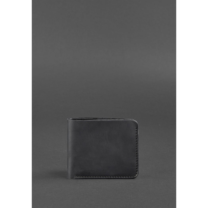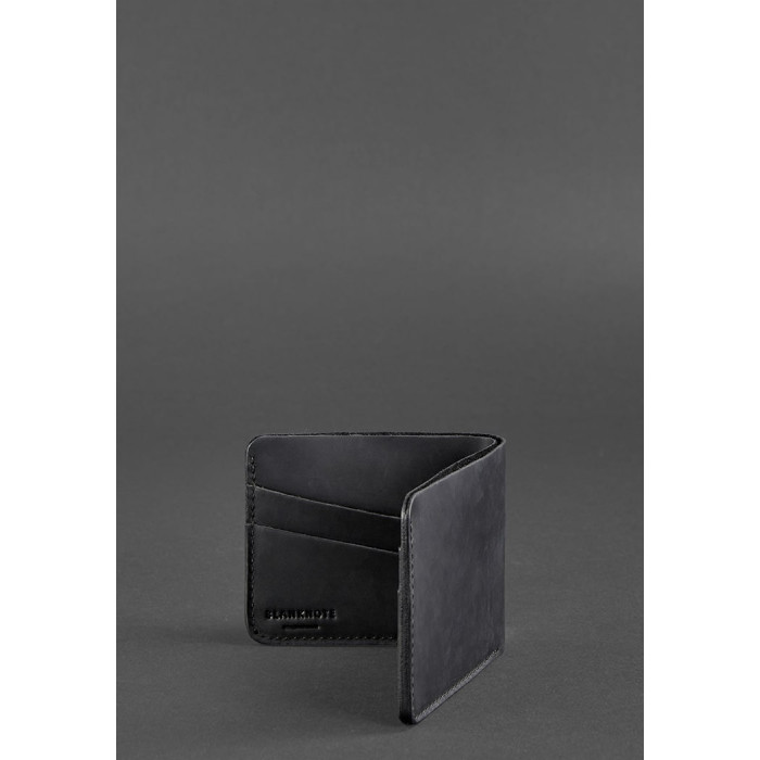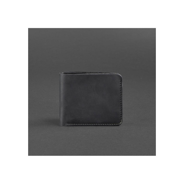 Компактное черное портмоне из натуральной кожи Crazy Horse. Внутри четыре кармана для пластиковых ка..