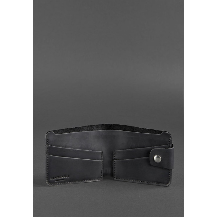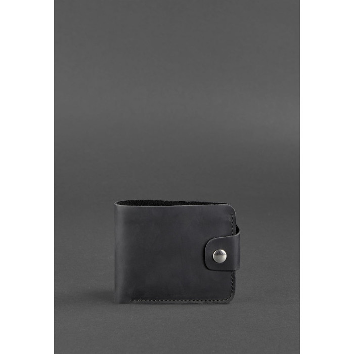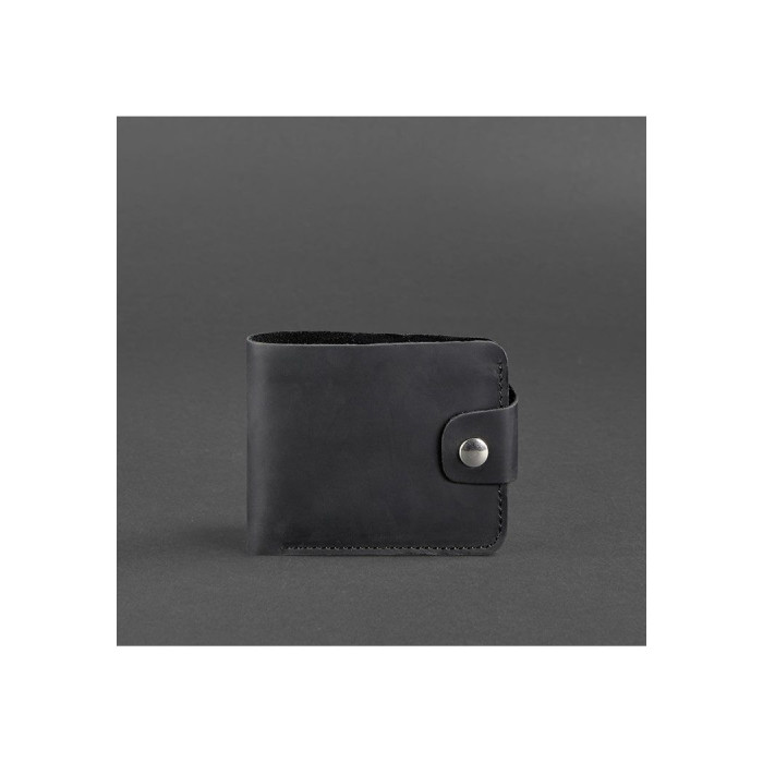 Компактное черное портмоне из натуральной кожи Crazy Horse.