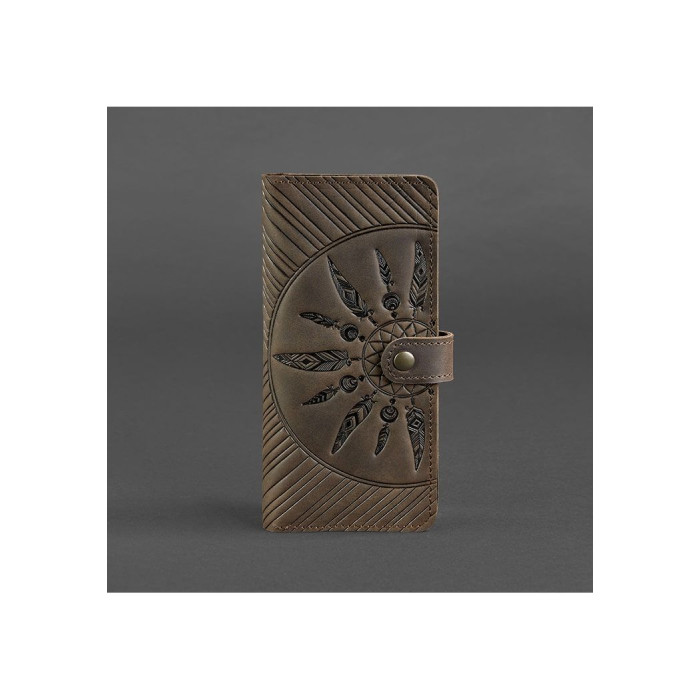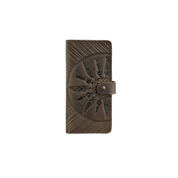 Украшен аксессуар тиснением в виде ловца снов. Мы уверены, что этот индейский талисман выполняет не только декоративную функцию, но и защищает финансы от быстрого расходования и необдуманных трат. Тиснение выполнено четко и аккуратно. Вам понравиться держать портмоне в руках!