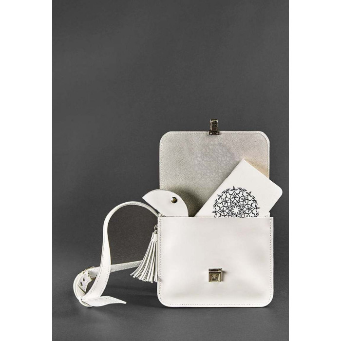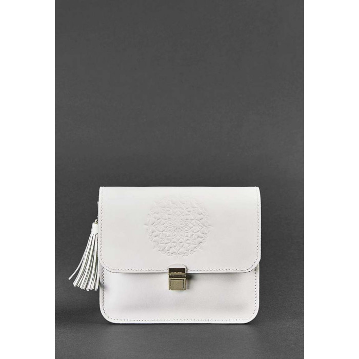 Миниатюрная бохо-сумка «Лилу» выполнена в белом цвете из натуральной кожи. Несмотря на небольшой размер, эта сумка удивит Вас своей функциональностью, универсальностью и вместительностью.