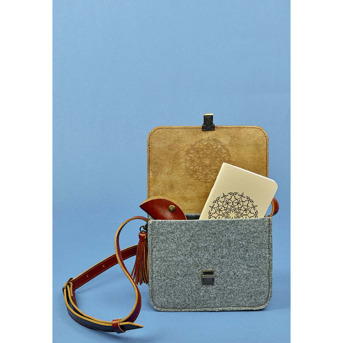 катышков. Фактуру и сдержанный цвет фетра подчёркивают контрастные кожаные