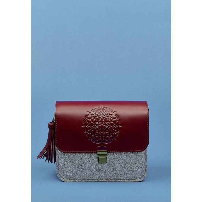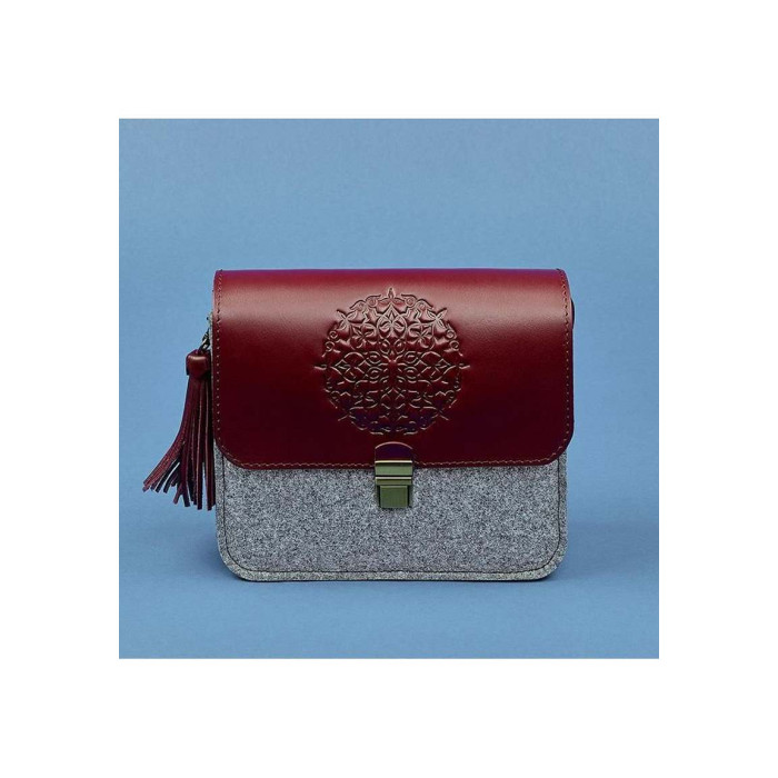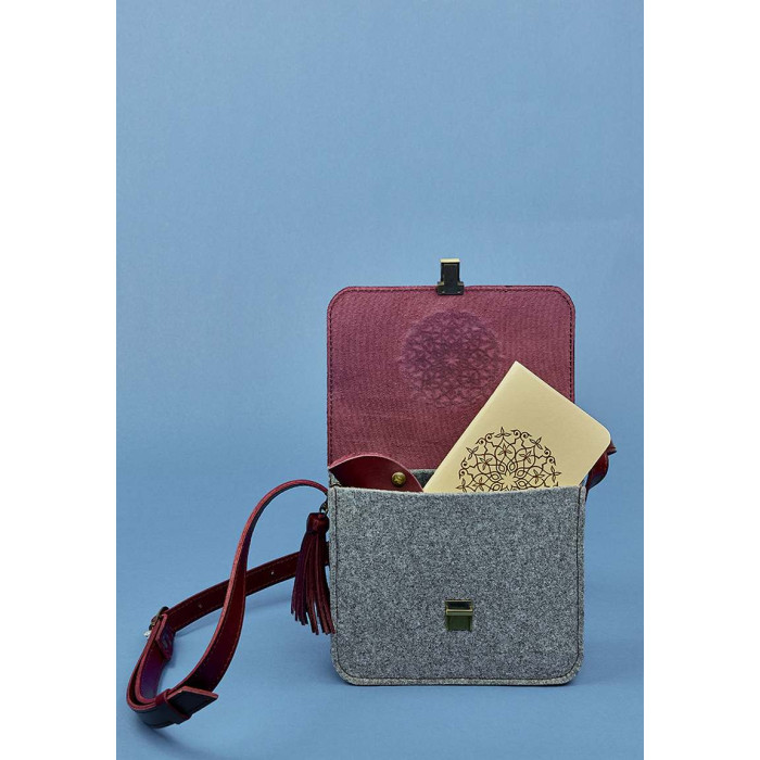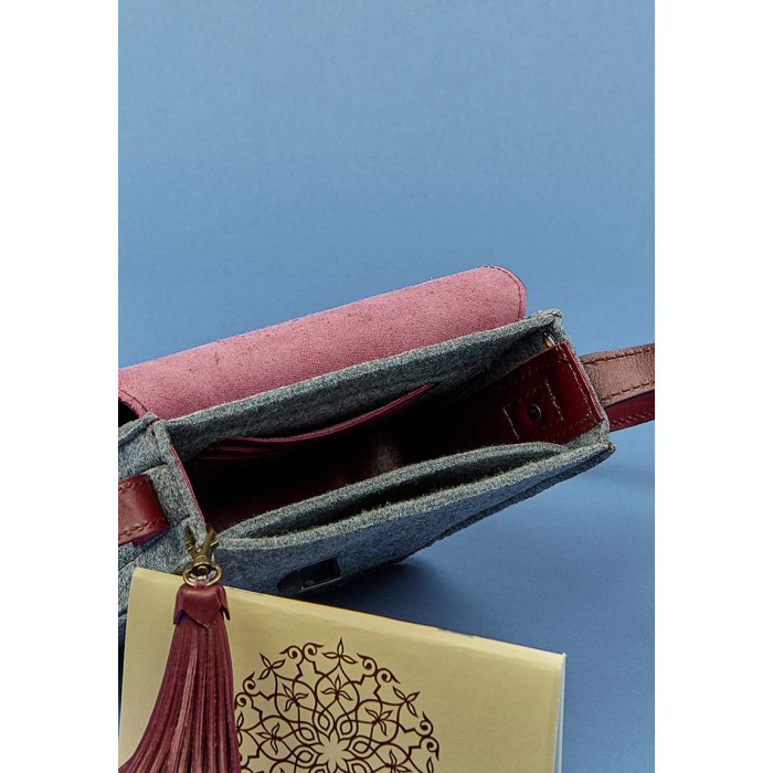 катышков. Фактуру и сдержанный цвет фетра подчёркивают контрастные кожаные