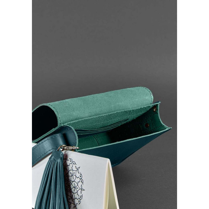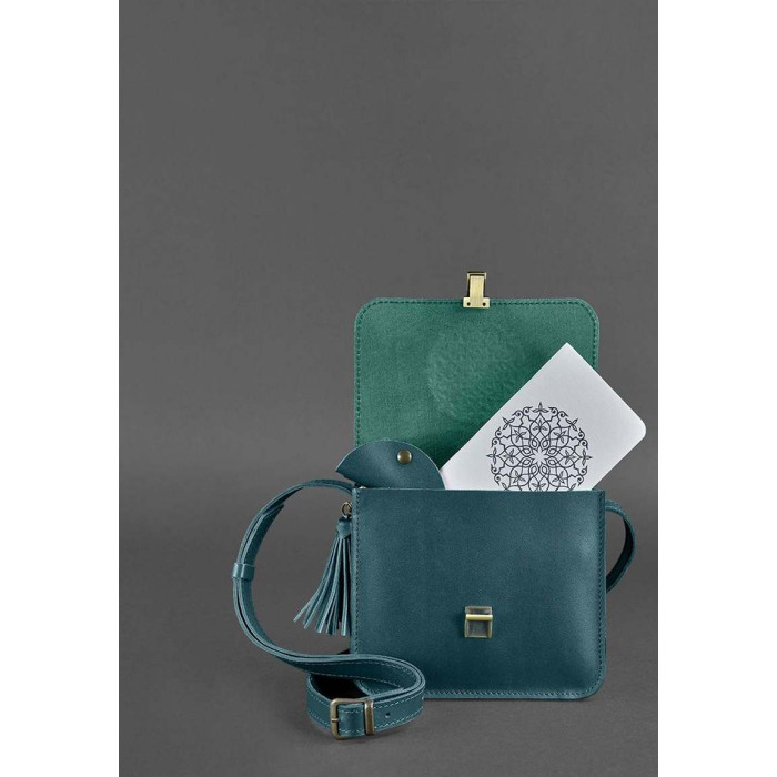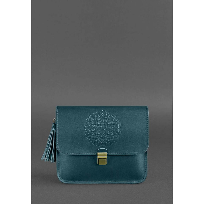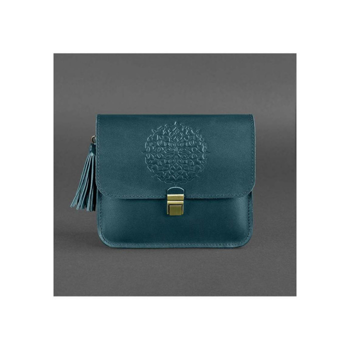 Сумка изготовлена из качественной натуральной кожи. Её оригинальный, и в то же время классический, дизайн никого не оставит равнодушным! Тиснение в виде индийском мандалы, которое украшает клапан сумки, добавит гармонии и умиротворения образу. А глубокий темно-бирюзовый цвет усилит этот эффект.