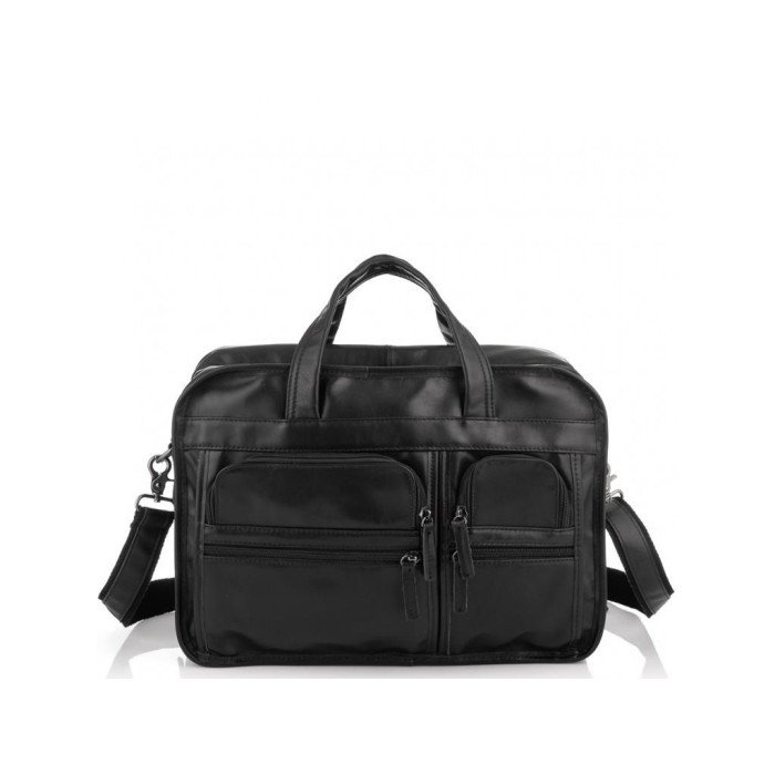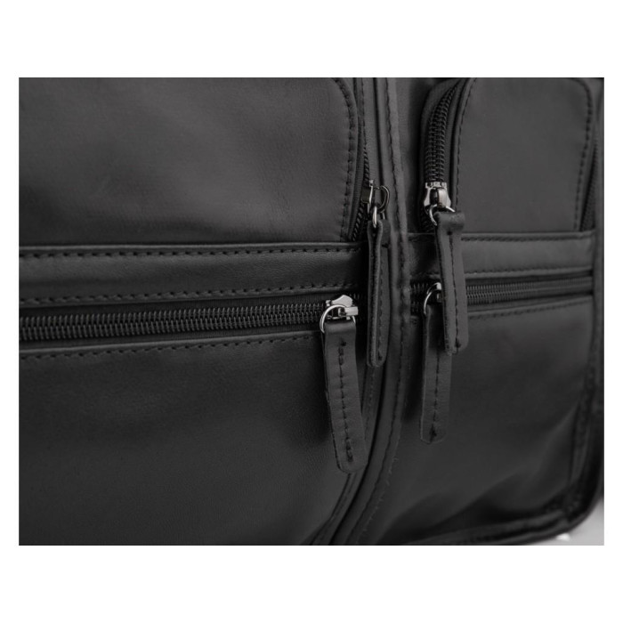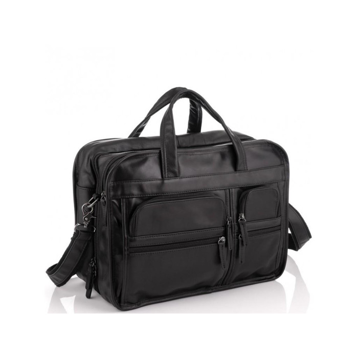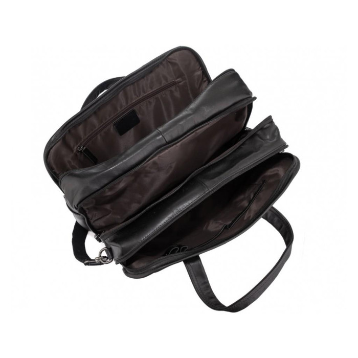 Кожаная сумка для ноутбука, так же ее можно использовать для командировок так как она достаточно вместительна. Сделана она с гладкой кожи, для носки есть кожаные ручки и наплечный ремень. Фурнитура - надежная, пуллера - кожаные. Сумка имеет три основных отделения, центрально - самое большое, два по бокам меньше размеров. Внутри первого карман на молнии, в другом отделении два кармана открытого типа и два держателя для ручек. С лицевой стороны есть 4 маленьких кармана для мелочей с тыльной стороны карман на молнии горизонтального типа.