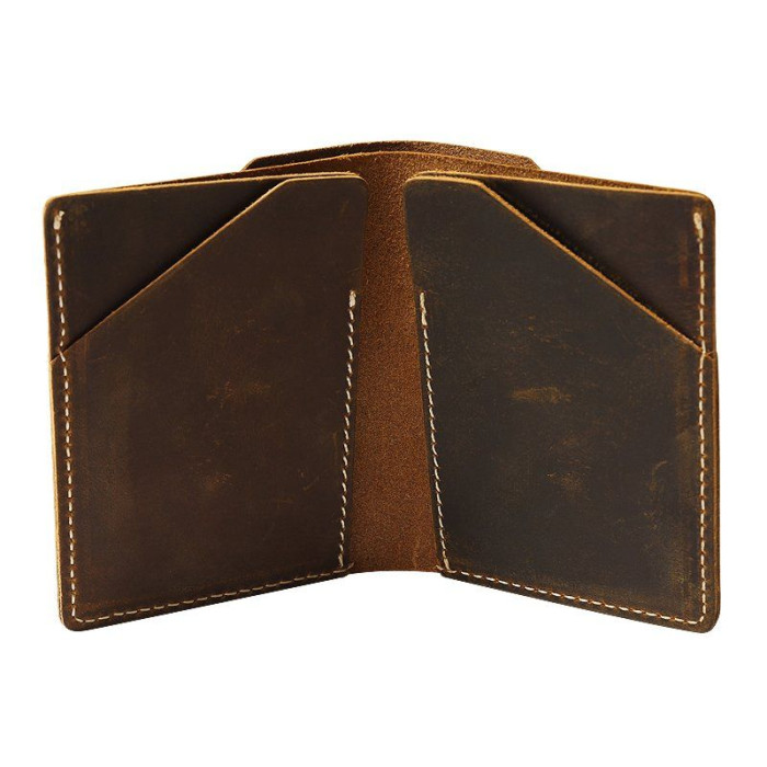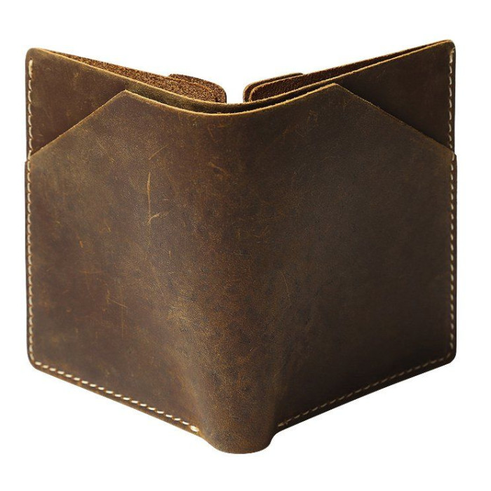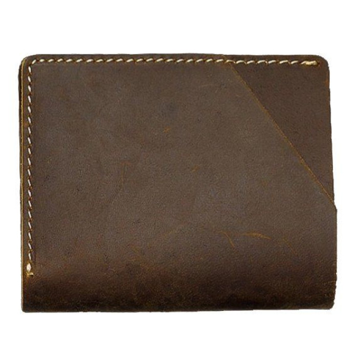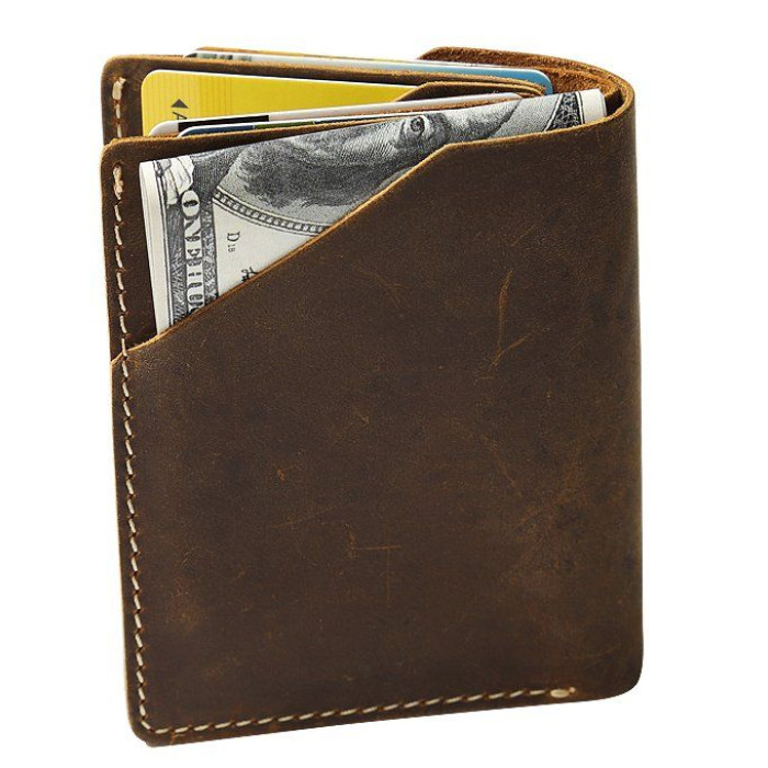 Стильный компактный бумажник с минимальным функционалом. Аксессуар не занимает много места и вмещается в карман брюк. Модель подойдет как мужчине, так и женщине. Изделие изготовлено из винтажной кожи, на которой в процессе эксплуатации появляются царапины и потерости. Если вы в поисках компактного бумажника – советуем обратить внимание на данную модель. Его оригинальный дизайн не останется незамеченным.