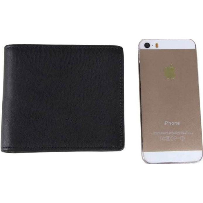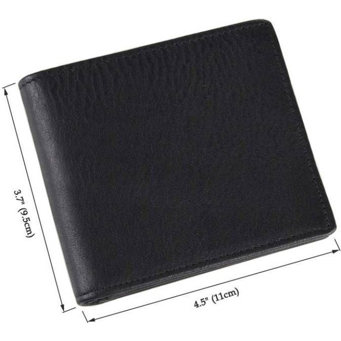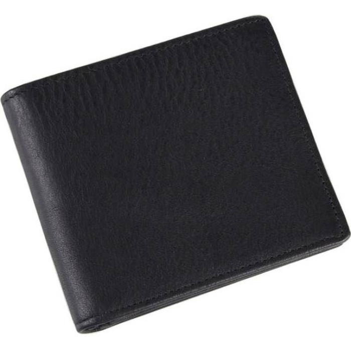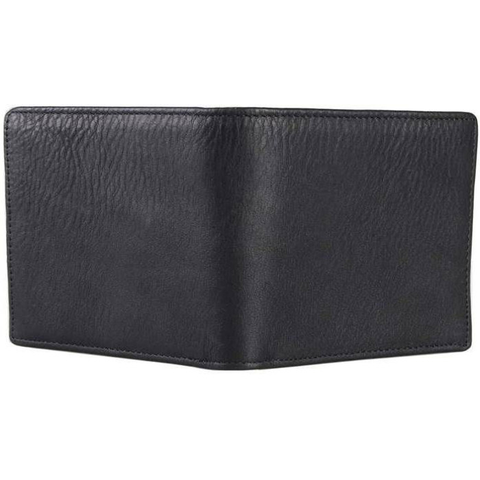 Горизонтальный мужской бумажник черного цвета. Аксессуар выполнен из натуральной высококачественной фактурной кожи приятной на ощупь. Аксессуар упакован в белый пылезащитный мешок.