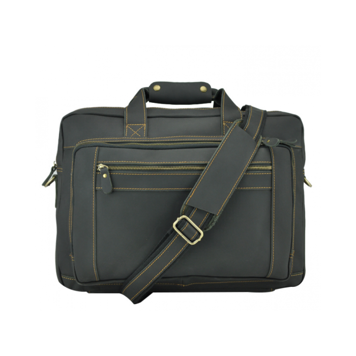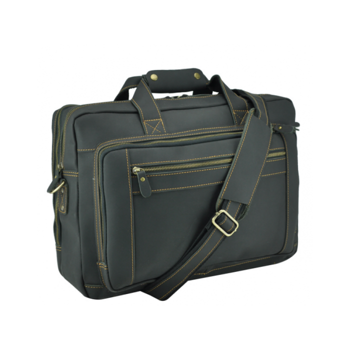 Мужская сумка от Tiding Bag в винтажном стиле отличный вариант для деловых мужчин, которым нужно иметь при себе ноутбук, ежедневник и не одну папку с бумагами. Сумка для ноутбука сделана из лошадиной кожи, дополнена металлической фурнитурой. Имеет 2 основных отдела разных по размеру, оба на змейках. С лицевой стороны большой накладной карман. Внутри портфеля есть отсек для ноутбука и множество карманов-органайзеров для канцелярии. У сумки имеются анатомические короткие ручки для ношения сумки в руке и широкая наплечная шлейка, также изготовленная из кожи и регулируемая по длине. С тыльной стороны расположен фиксатор для крепления портфеля к дорожному чемодану. Представленная модель станет незаменимым аксессуаром для работы, командировок и путешествий.