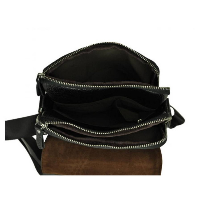 Мужская сумка в классическом стиле изготовлена из натуральной телячьей кожи. Она идеально подходит в качестве сумки для планшета или ежедневника, мелкой канцелярии. Инновационные методы обработки поверхности кожи гарантируют мягкость, но в то же время высокую прочность и износостойкость изделия. Модель компактна, но при этом вместительна, матовая текстурная поверность кожи, накидной клапан на скрытых магнитах, плотная наплечная шлейка с надежными креплениями - вот лишь немногие плюсы аксессуара. Такая мужская сумка на плечо имеет два основных отделения на молниях и отдел-перегородку без замка.