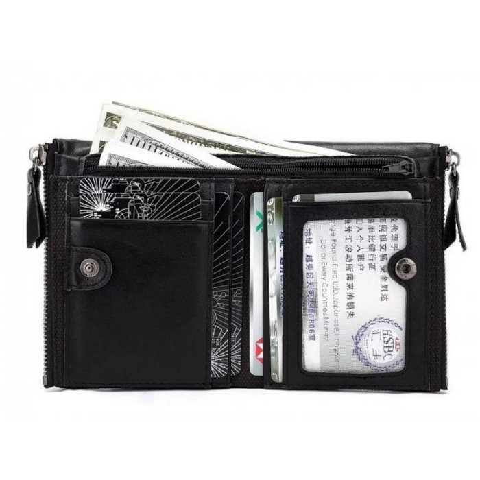 стиль классика, casual бескаркасная модель телячья кожа зернистая поверхность цвет: черный размеры (см): 11,5 х 9 х 2,5 два основных отделения + отсеки для карт тип портмоне: двойное сложениеВыбирая наш магазин, Вы получаете:
