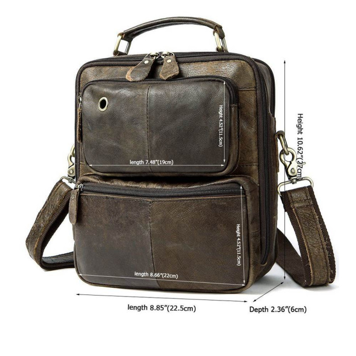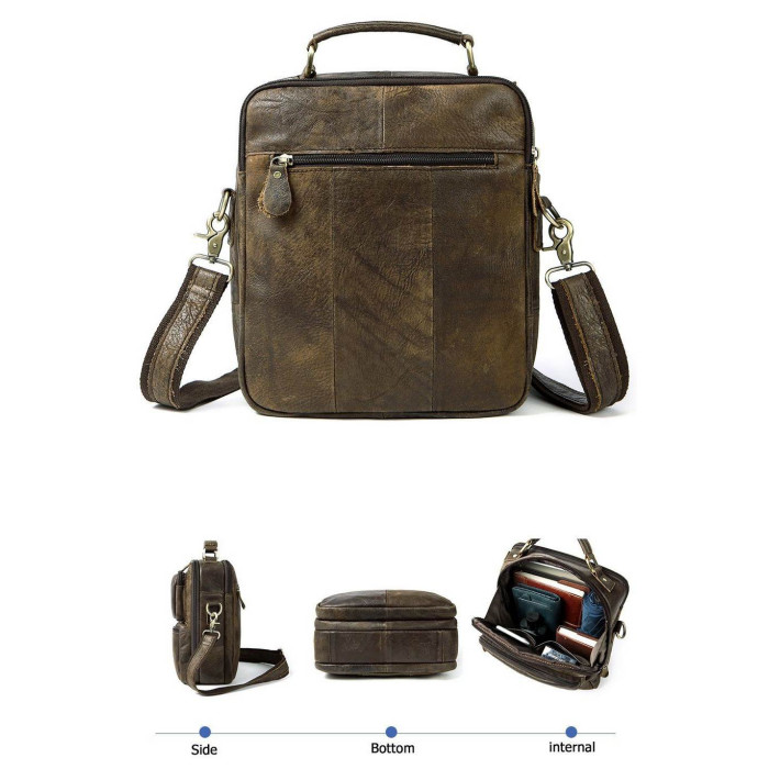 Сумка с эффектом старины. Размер сумки один из самых оптимальных для любого мужчины. Вы можете носить ее как на плече, так и в руках, есть кожаная ручка для вашего удобства. Очень удобная в использовании и не прихотливая в уходе вещь. Сумка прослужит вам не один год. Модель дополнена качественной крепкой фурнитурой золотистого цвета. Производится фабрикой в Китае, которая уже давно на рынке. Мы контролируем процесс производства сумок, которые заказываем. В качестве вы можете не сомневаться. Аксессуар упакован в тканевой мешок, что очень удобно для его хранения. Будет желанным подарком для любого повода.