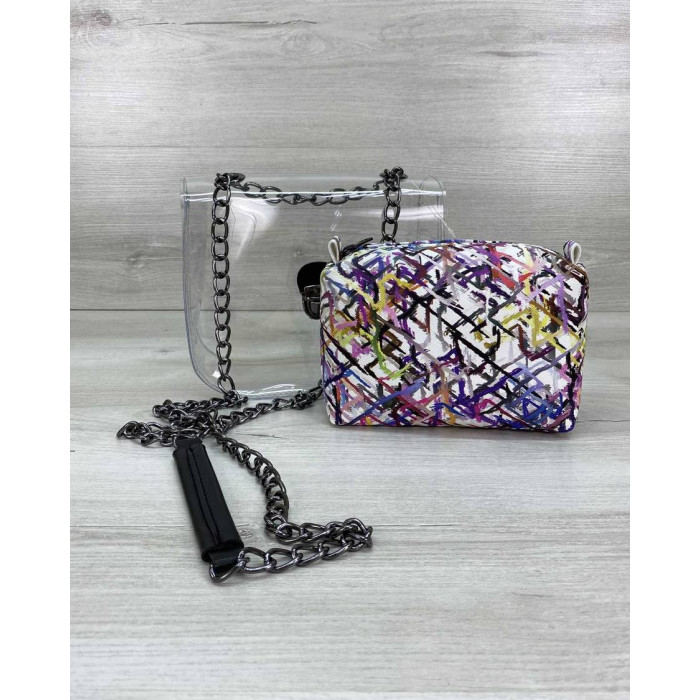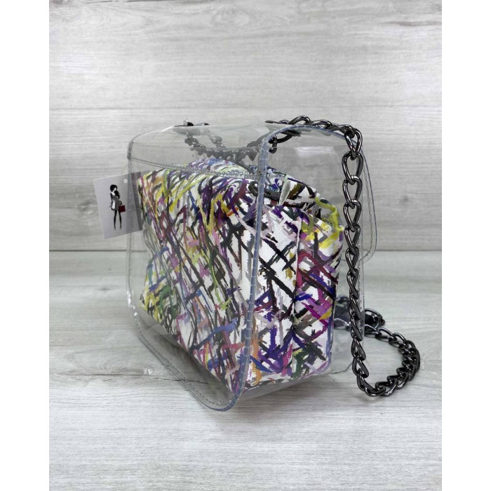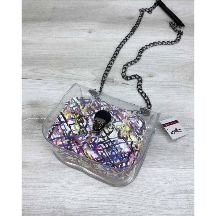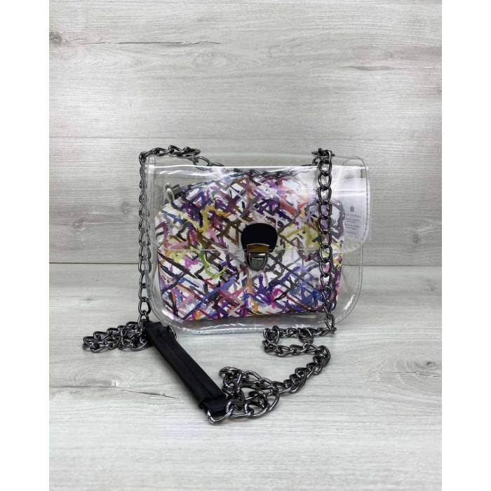 Стильная молодежная сумка Селена выполнена из кожзаменителя высокого качества и силикона. Силикон плотный, держит форму. Крышка открывается при помощи собачки. Плечевой ремешок выполнен в виде металлической, никельной цепочки длиной 120 см. На цепочке имеется фрагмент из кожзама, чтобы удобнее было носить на плече.