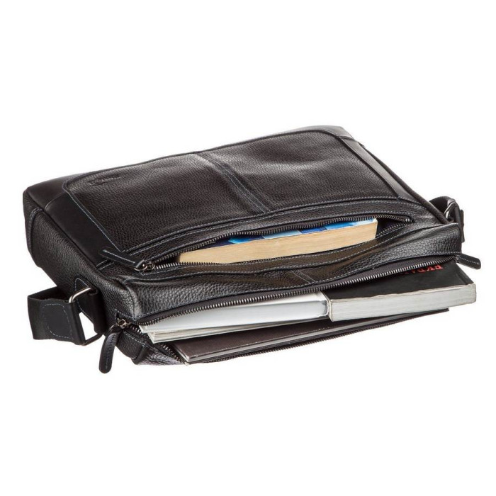 Практичная и удобная деловая кожаная мужская сумка станет прекрасным помощником для любого мужчины. Аксессуар выполнен из натуральной кожи типа флотар, которая особо не прихотлива в уходе и имеет шикарный внешний вид. Аксессуар имеет несъемную текстильную ручку. Внутри – крепкая текстильная подкладка. Изделие дополнено фурнитурой цвета латуни. По краям в дизайн изделия ровная светлая строчка. Закрывается сумка на молнию. Все ваши личные вещи будут в безопасности. Вы можете не сомневаться, что она прослужит вам далеко не один год. В комплекте идет тканевый чехол.