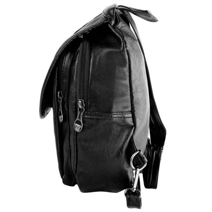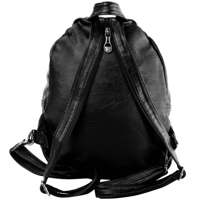 Количество основных отделений: 1. Внутри есть прорезной карман на молнии. Дополнительные отделения: 1. На лицевой стороне есть накладной карман. Модель имеет две регулируемые по длине плечевые лямки. Детали пришиты только с одной стороны, а с другой крепятся к аксессуару при помощи карабинов. Их можно соединить при помощи молнии. Также у изделия есть короткая ручка для переноса в руке. Аксессуар пригоден для ношения в руке, на плече, за спиной. Материал подклады: ткань. Материал изделия: кожзам. Цвет: черный. Цвет фурнитуры: черное серебро. Размеры (X*Y*Z): 24*31*10 см. Сумка закрывается при помощи молнии, а также клапана с магнитной застежкой. Документы формата А4 не помещаются в изделии. Изделие упаковано в полиэтиленовый пакет. Страна происхождения ТМ Valiria Fashion, а также страна-производитель – Китай. Гарантия: 1 месяц. Внимание! В зависимости от настроек монитора оттенок изделия может отличаться от действительности. Пожалуйста, сделайте проверку цвета на нескольких компьютерах или уточните эту информацию у наших менеджеров.