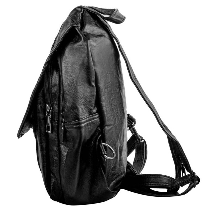 Размеры (X*Y*Z): 23*30*10 см. Цвет: черный. Цвет фурнитуры: черное серебро. Материал изделия: кожзам. Материал подклады: ткань. Количество основных отделений: 1. Внутри есть прорезной карман на молнии. Дополнительные отделения: 1. Закрывается при помощи молнии. На лицевой стороне есть накладной карман. Модель имеет две регулируемые по длине плечевые лямки. Детали пришиты только с одной стороны, а с другой крепятся к аксессуару при помощи карабинов. Их можно соединить при помощи молнии. Также у изделия есть короткая ручка для переноса в руке. Аксессуар пригоден для ношения в руке, на плече, за спиной. Сумка закрывается при помощи молнии, а также клапана с магнитной застежкой. Документы формата А4 не помещаются в изделии. Изделие упаковано в полиэтиленовый пакет. Страна происхождения ТМ Valiria Fashion, а также страна-производитель – Китай. Гарантия: 1 месяц.