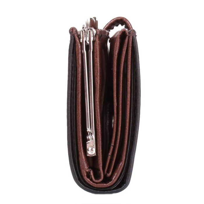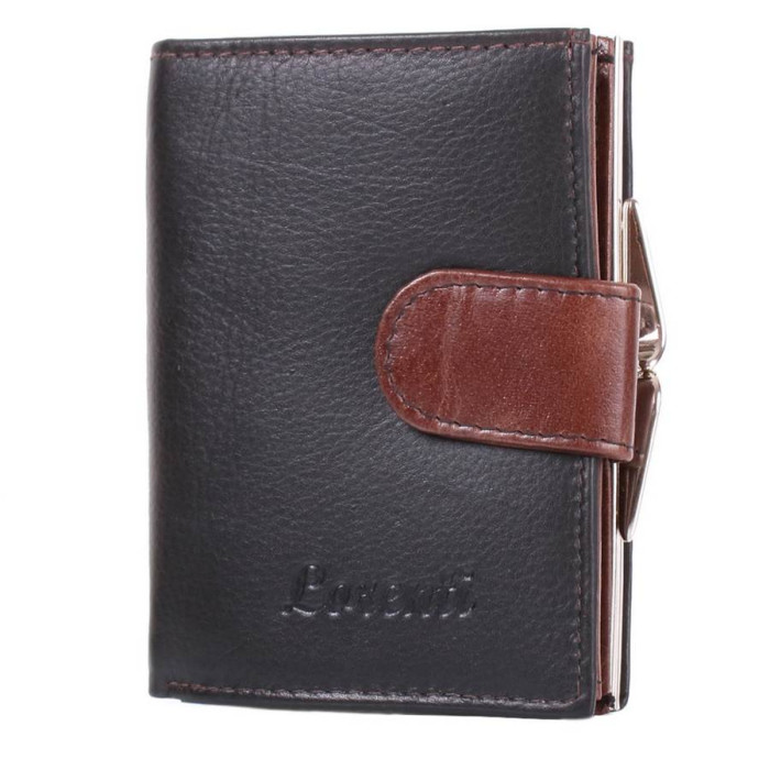 Количество основных отделений (для купюр): 2. Отделения для фотокарточек, пропусков, проездных билетов и прочих документов: 3 (имеет прозрачное окошко). Отделения для визиток, банковских и дисконтных карт: 11. Дополнительные отделения: 1. Отделения для мелочи: 1. Карман-монетница закрывается с помощью застежки-рамки (фермуар). Материал изделия: кожа. Цвет: черный, темный коричневый. Цвет фурнитуры: серебро. Размеры (X*Y*Z): 8,5*11,5*2,5 см. Ширина в раскрытом виде - 18 см. Аксессуар закрывается при помощи хлястика на механической кнопке. Изделие упаковано в фирменную картонную коробку. Страна происхождения ТМ Lorenti - Польша. Гарантия: 1 месяц.