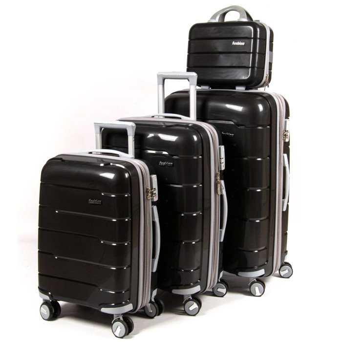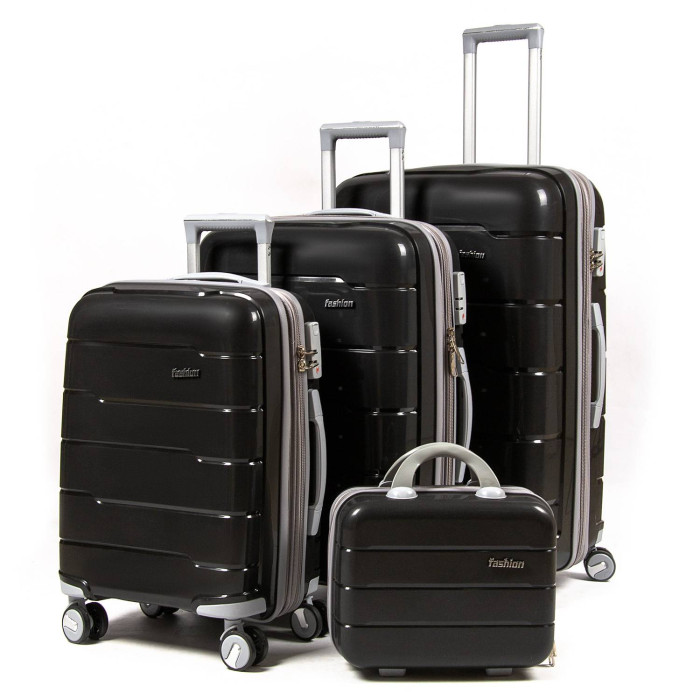 Комплект из четырех пластиковых чемоданов.