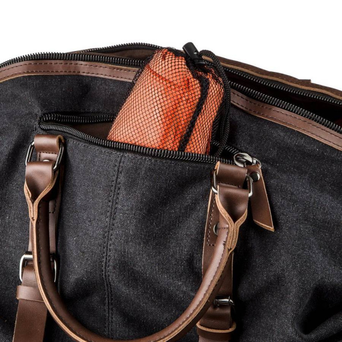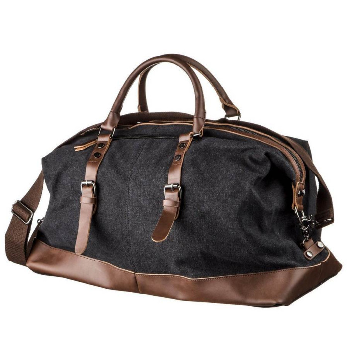 Вместительная походная сумка большого размера черного цвета из прочного текстиля. Сумка имеет оптимальный размер для небольшой поездки или для похода в зал. Снизу изделия уплотненное дно с металлическими ножками, которые защищают дно от потертостей и царапин. Вы можете носить сумку, как в руках, так и через плечо с помощью съемного плечевого ремешка. Модель доступна в разных цветах и размерах на нашем сайте.