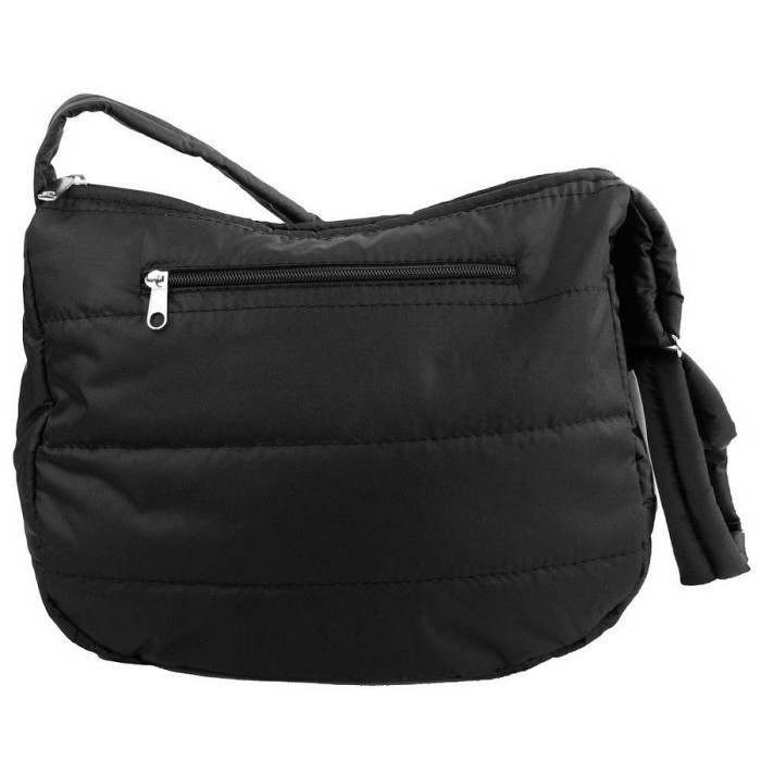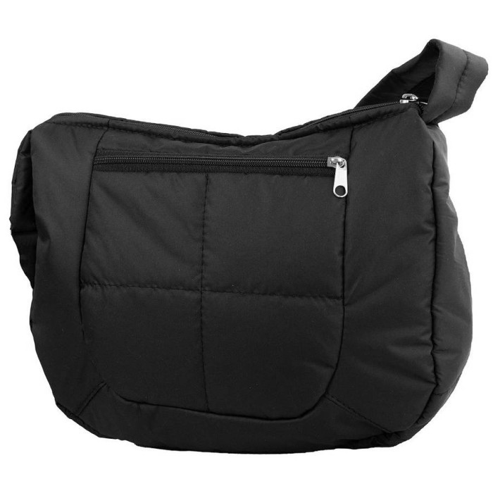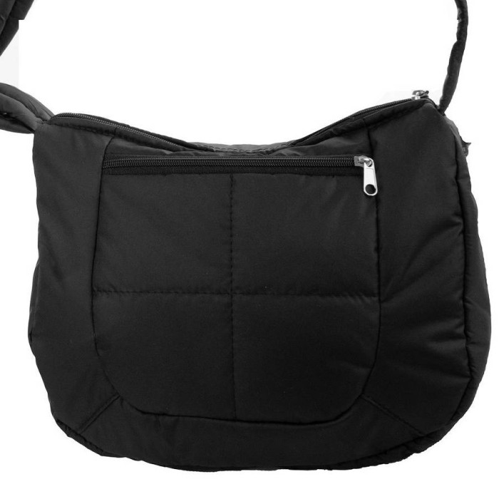 Размеры (X*Y*Z): 31 х 27 х 12 см. Цвет: черный. Цвет фурнитуры: серебро. Материал: ткань. Материал подклады: ткань. Количество основных отделений: 1. Внутри есть накладной карман. Гарантия: 1 месяц. На лицевой и тыльной сторонах есть по карману на молнии. Аксессуар можно носить в руке, на плече или на через плечо. Плечевой ремень регулируется при помощи пряжки до 131 см. Модель закрывается с помощью молнии. Документы формата А4 не помещаются в сумку. Сумка упакована в полиэтиленовый пакет. Страна происхождения ТМ Eterno, а также страна-производитель - Украина.