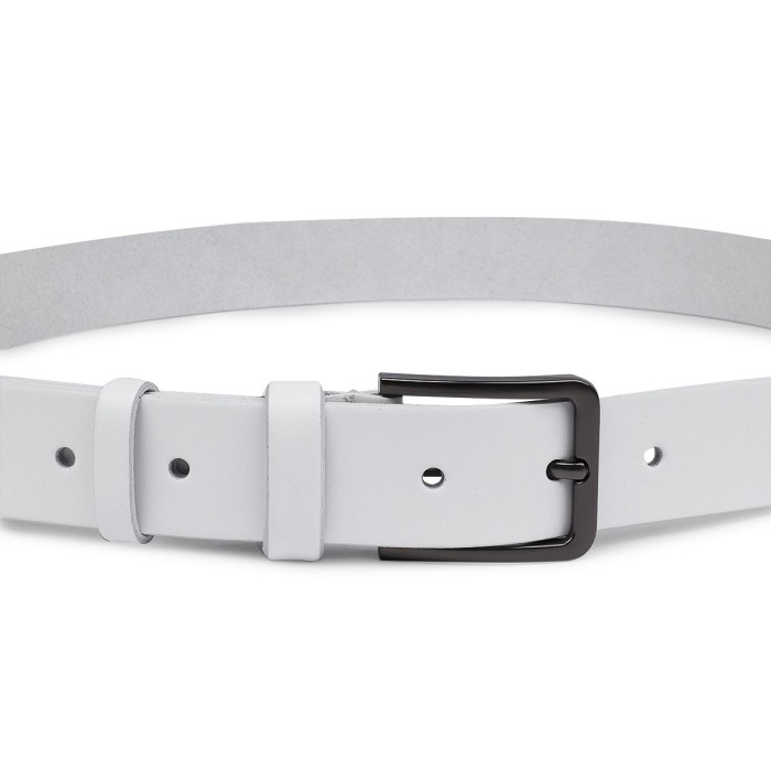 Отличный ремень из высококачественной кожи с высокими показателями износоустойчивости. Имеет красивый белый цвет, классическую аккуратную пряжку и гладкую приятную на ощупь фактуру. Такой ремень можно преподнести в качестве подарка на любой праздник дорогому Вам человеку.