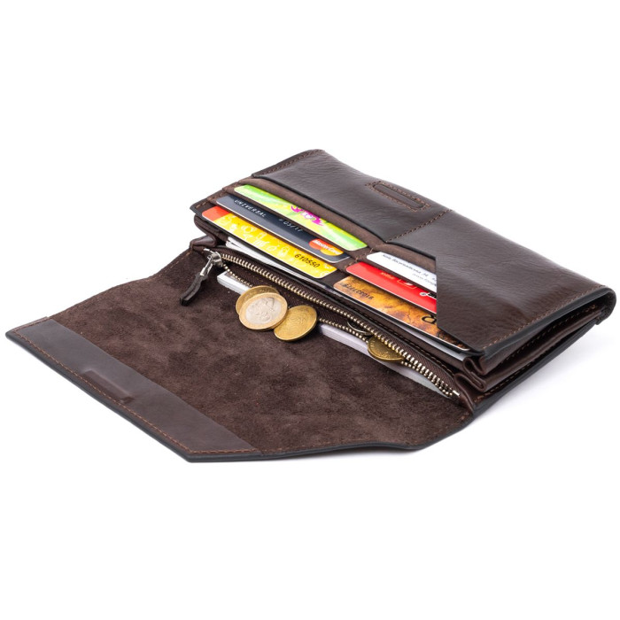 Полюбившийся клиентами клатч в глянцевой дорогой коже итальянского производства. Изделие имеет продуманный до мелочей дизайн. Очень практичное. В клатч помещаются купюры в развернутом виде. Дополнен аксессуар также ячейками для кредиток. В клатче собран весь необходимый функционал для современного клиента. Изделие удобно лежит в руке. Глянцевая кожа отлично и долго носится и не требует к себе особенного ухода. В комплекте идет фирменная коробка. Клатч станет лучшим подарком для ваших близких.