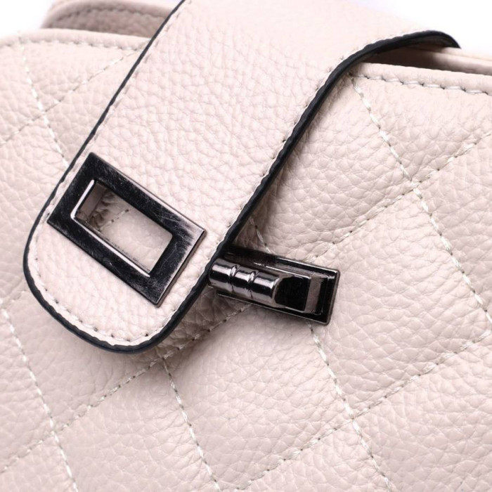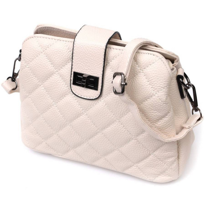 Стеганая женская сумка из натуральной кожи флотар, которая неприхотлива в уходе и долго носится. Аксессуар состоит из трех основных отделений, потайного кармана на молнии, кармана открытого типа и кармана на молнии снаружи. Носить сумку можно под рукой, на плече и через плечо, для этого имеется кожаный съемный ремень. В изделии использована качественная фурнитура цвета темного серебра. Универсальный вариант сумки как на вечер так и в качестве сумочки на каждый день.