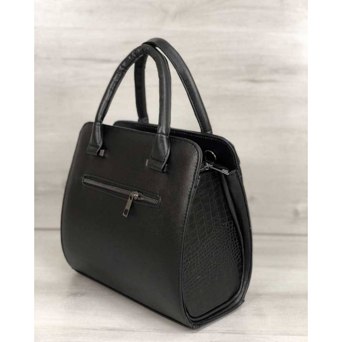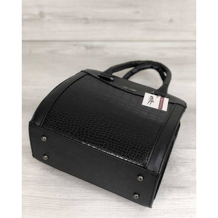 Каркасная женская сумка Эбби черного цвета со вставками черный крокодил WeLassie