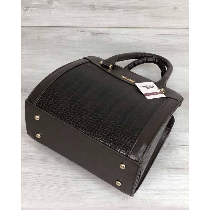 Стильная каркасная женская сумка Эбби, изготовлена из искусственной кожи высокого качества. Имеет одно отделение на молнии. Внутри есть карман на застежке и открытый карман для мобильного телефона, а также разделительное отделение. Есть наружный карман для мелких предметов. Высота ручек 12 см., в комплекте есть плечевой ремень.