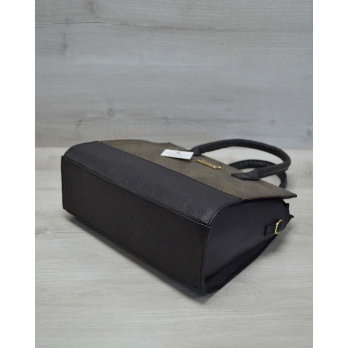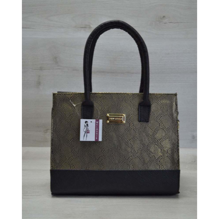 Каркасная женская сумка Селин золото с черным гладким WeLassie
