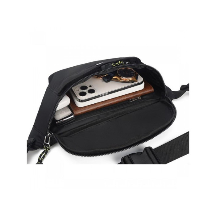 Имеет одно большое основное отделение с потайным кармашком в внутри. И дополнительный наружный кармашек на молнии с лицевой стороны. С тыльной стороны также есть небольшой карман на змейке.