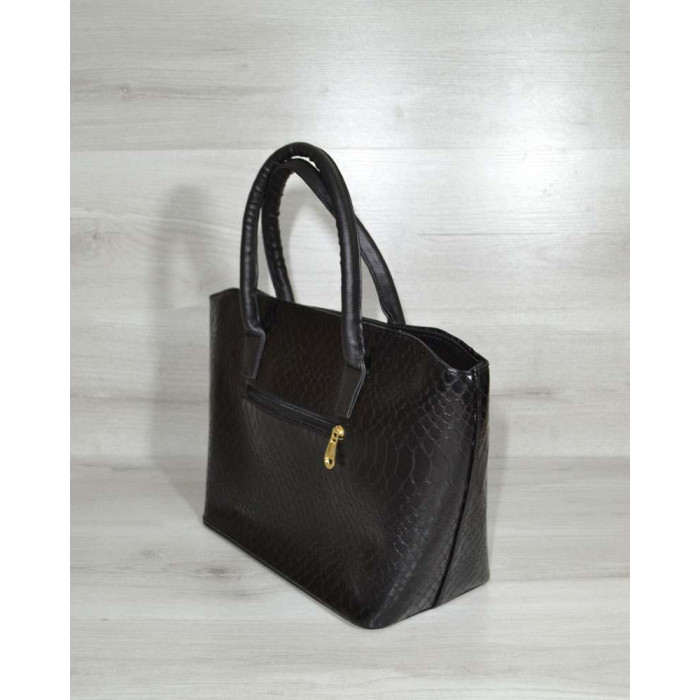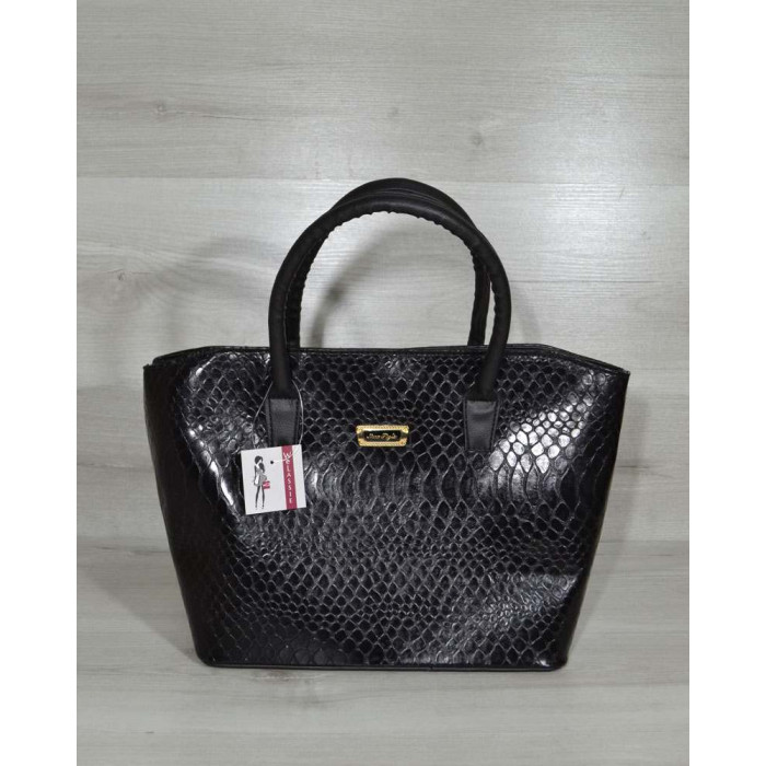 Классическая женская сумка «Две змейки» черная рептилия WeLassie