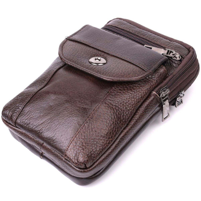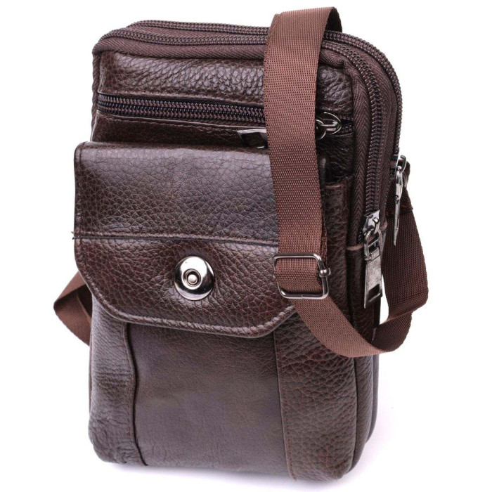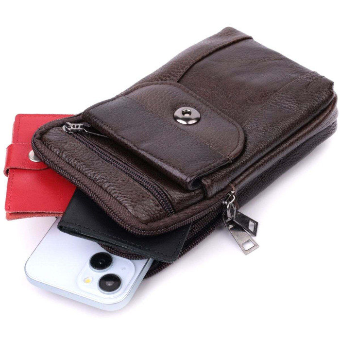 Небольшая вертикальная кожаная сумка которая с легкостью сможет заменить Вам барсетку. Особенностью сумки является то, что вы можете носить ее, повесив на свой ремень за петельку на тыльной стороне сумки или закрепить ее на карабин, а также на плече, для этого предусмотрен текстильный съемный ремешок. Маленькая сумка - очень практичный вариант для водителей, путешественников, а также для практичных мужчин, которые любят чтобы все было под рукой. Прослужит модель Вам далеко не один год. В комплекте к изделию идет пылезащитный чехол.