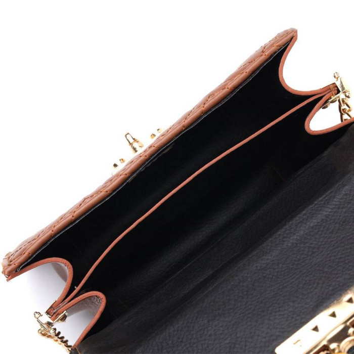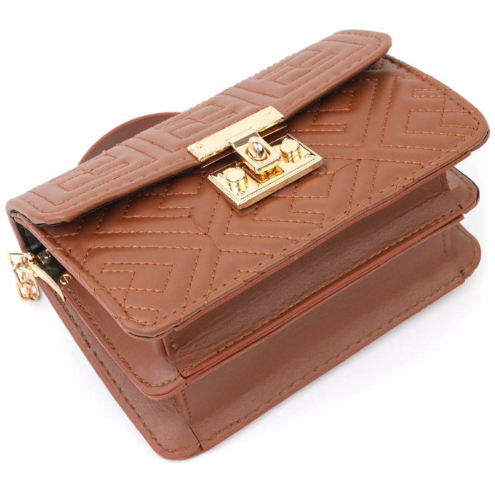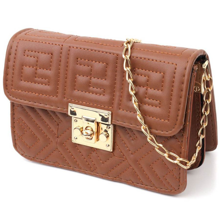 Отличная маленькая сумка коричневого цвета из качественной стеганной эко-кожи, с надежной механической пряжкой, золотого цвета. Сумка имеет небольшой размер, стильный дизайн. В изделии использована качественная фурнитура. Модель имеет жесткий каркас, что не позволит ей деформироватся во время носки долгое время, такую сумку приятно носить. Может быть отличным вариантом для подарка стильной женщине.