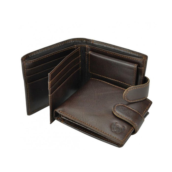 Функциональный мужской кошелек в изысканном шоколадном цвете. Портмоне закрывается на клапан со скрытым магнитом, имеет отсеки для купюр, множество слотов для пластиковых карт или визиток. Приятная на ощупь мягкая, но в то же время прочная, поверхность кожи, надежная прострочка оранжевой шелковой нитью и элемент тиснения с внешней стороны делают представлен аксессуар не только практическим помощником на каждый день, но и прекрасным дополнением повседневного стиля casual